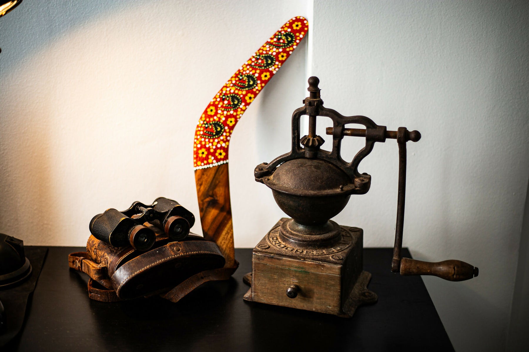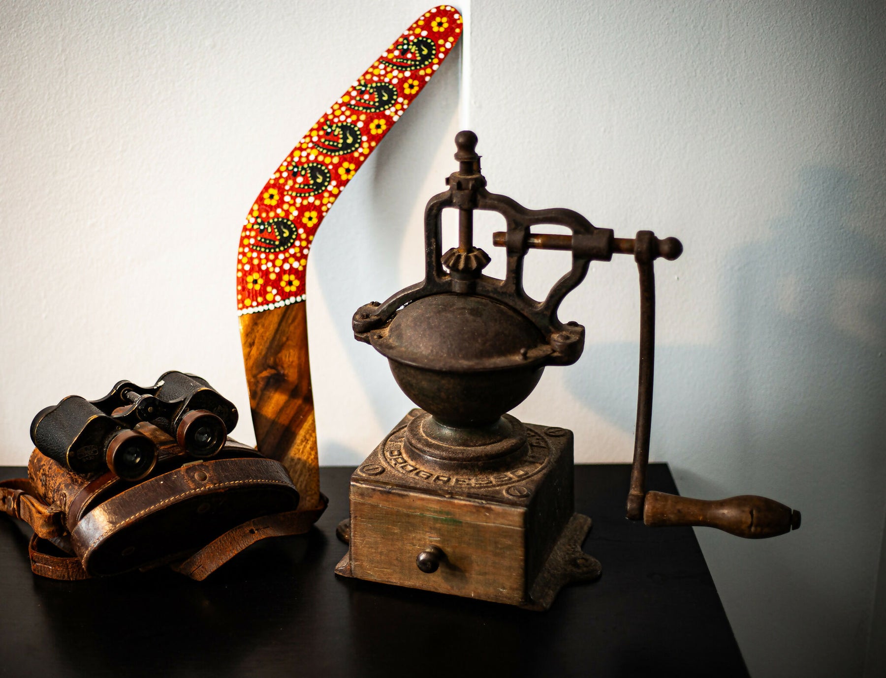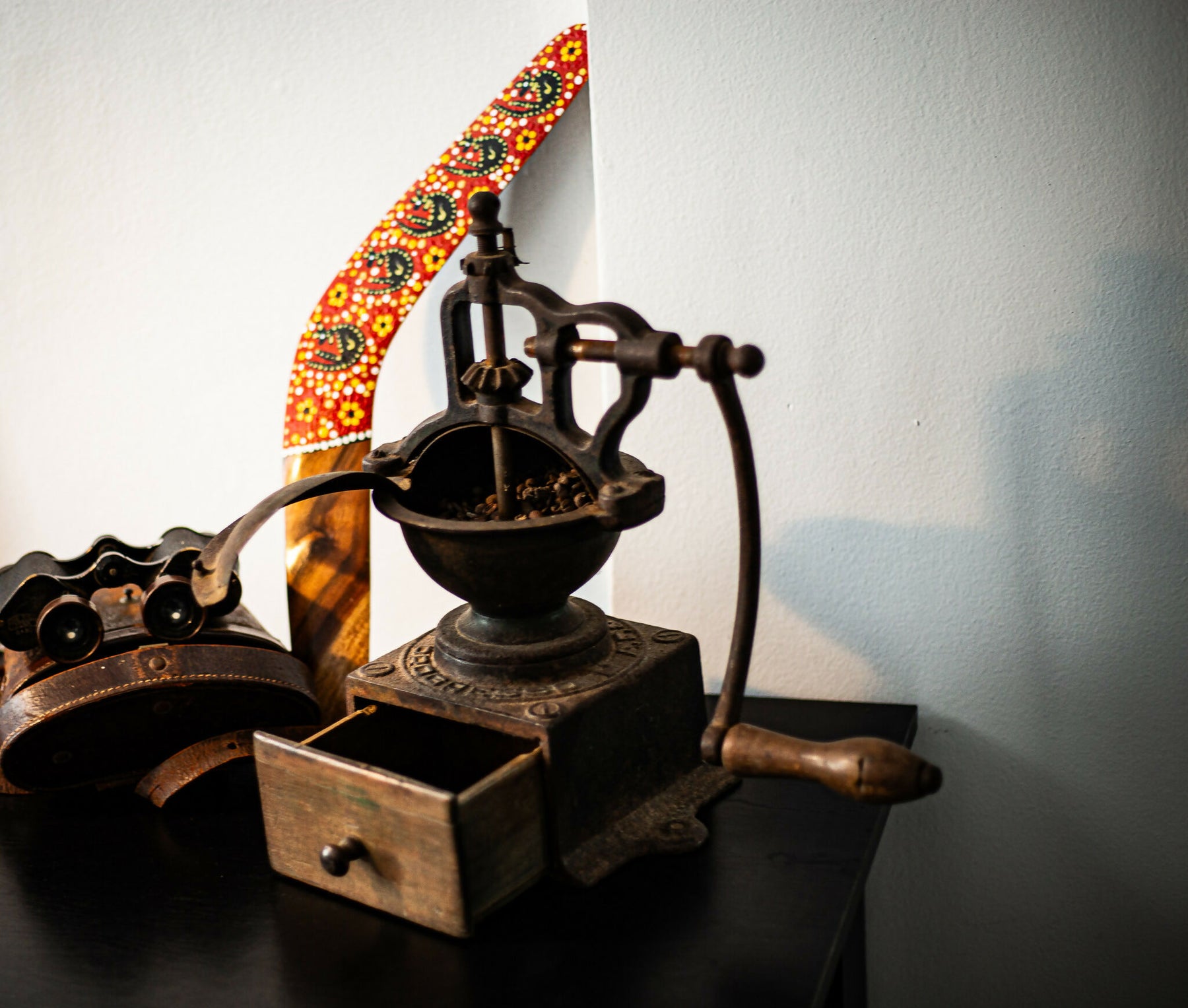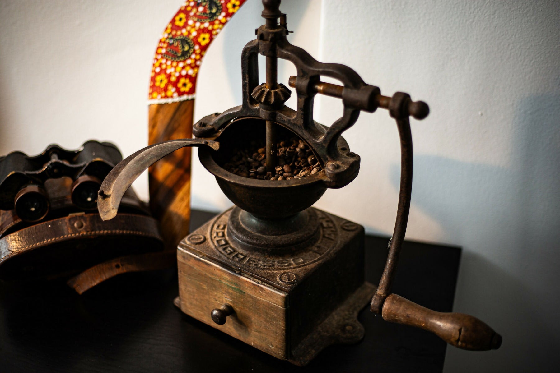 • Funcionamento: O grão é colocado na cúpula superior e, ao girar a manivela lateral, o café moído cai diretamente na gaveta de madeira na base.