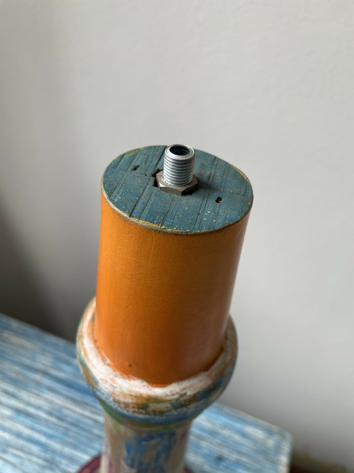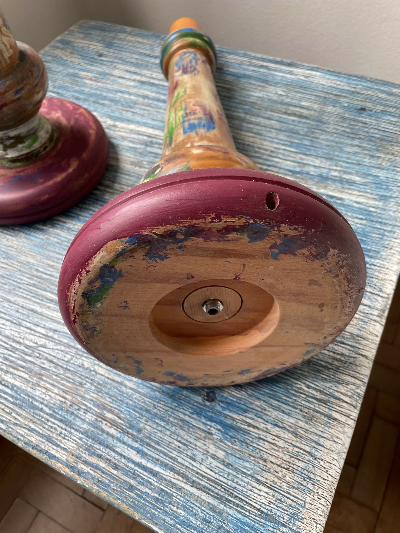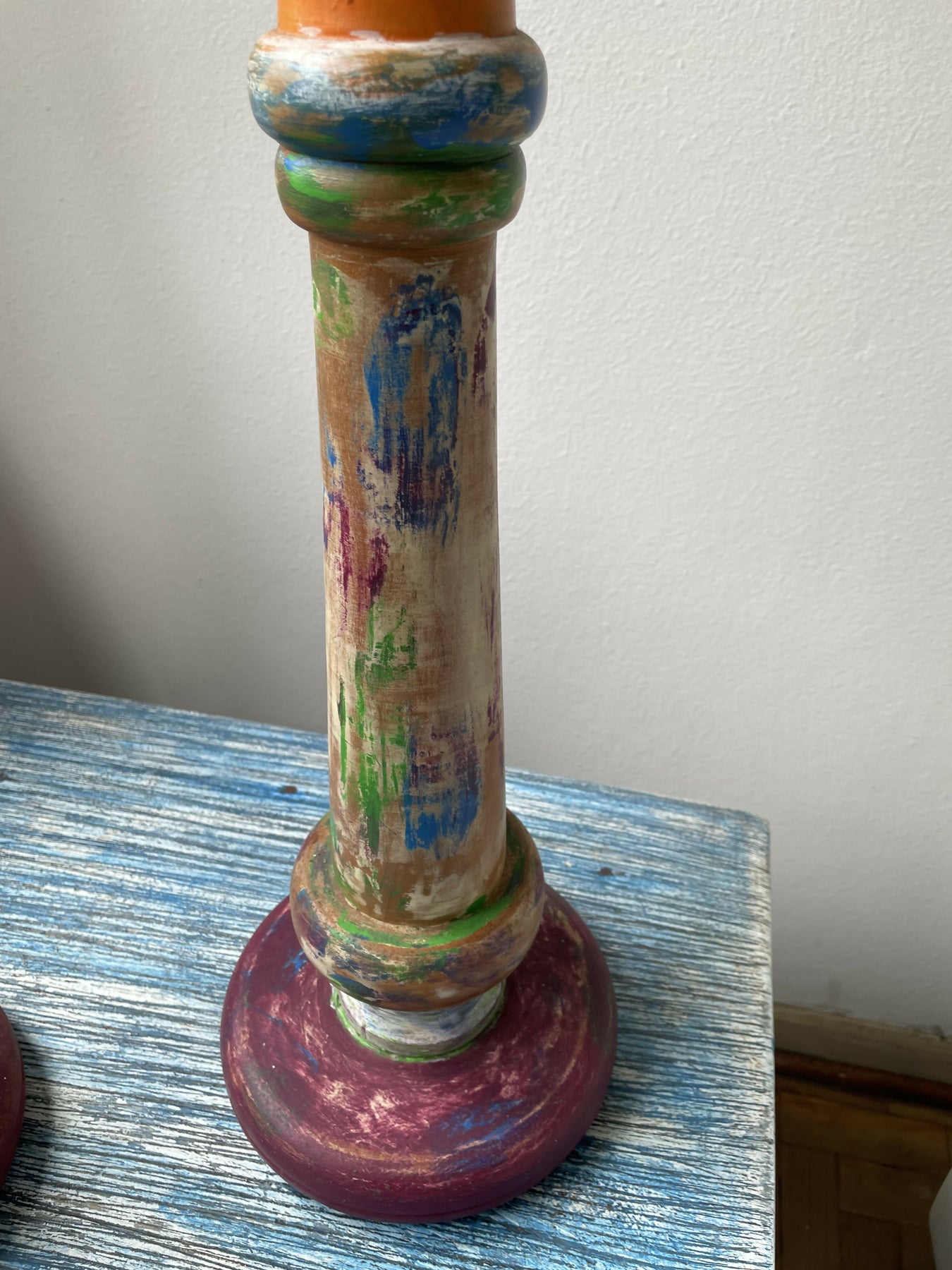 Par de base para abajur em madeira  com pintura abstrata medindo 52cm de altura e 20cm de diâmetro inferior.