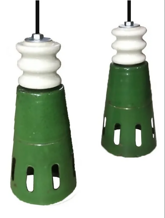 Cúpula antiga em ferro esmaltado (com pequenas marcas do tempo) e elementos de porcelana de alta tensão. Disponível apenas o par (2 unids)