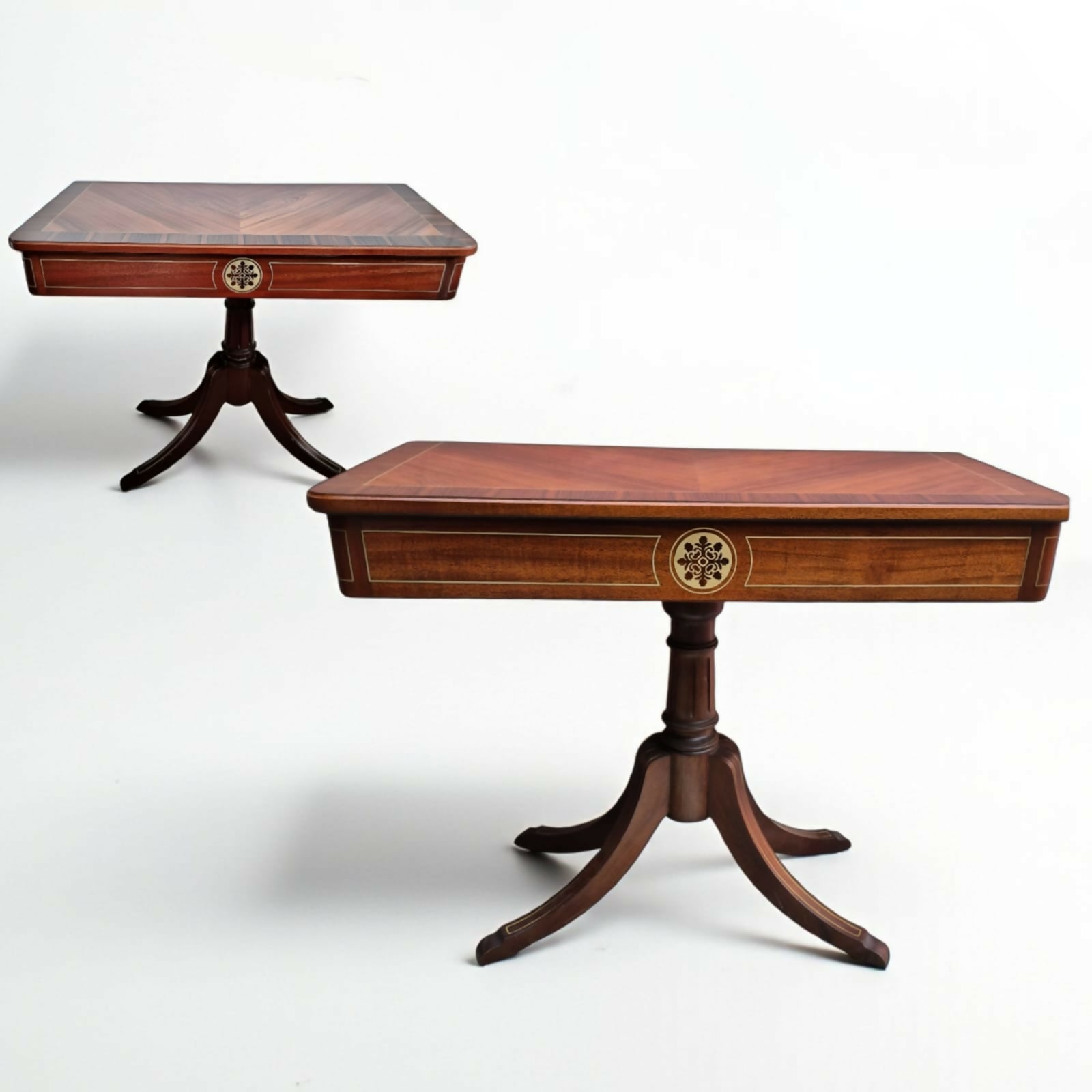Magnífico par de mesas de apoio no refinado estilo Regência, expressão de elegância e equilíbrio em cada detalhe.