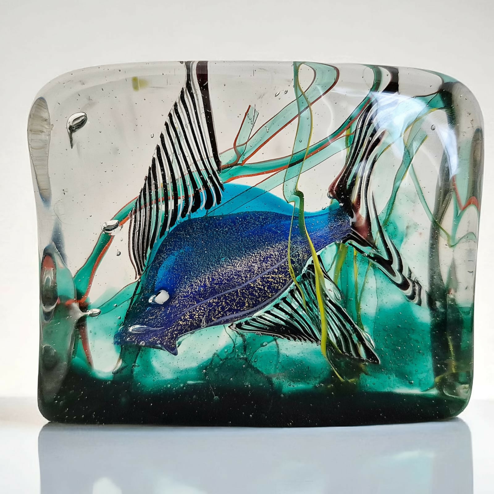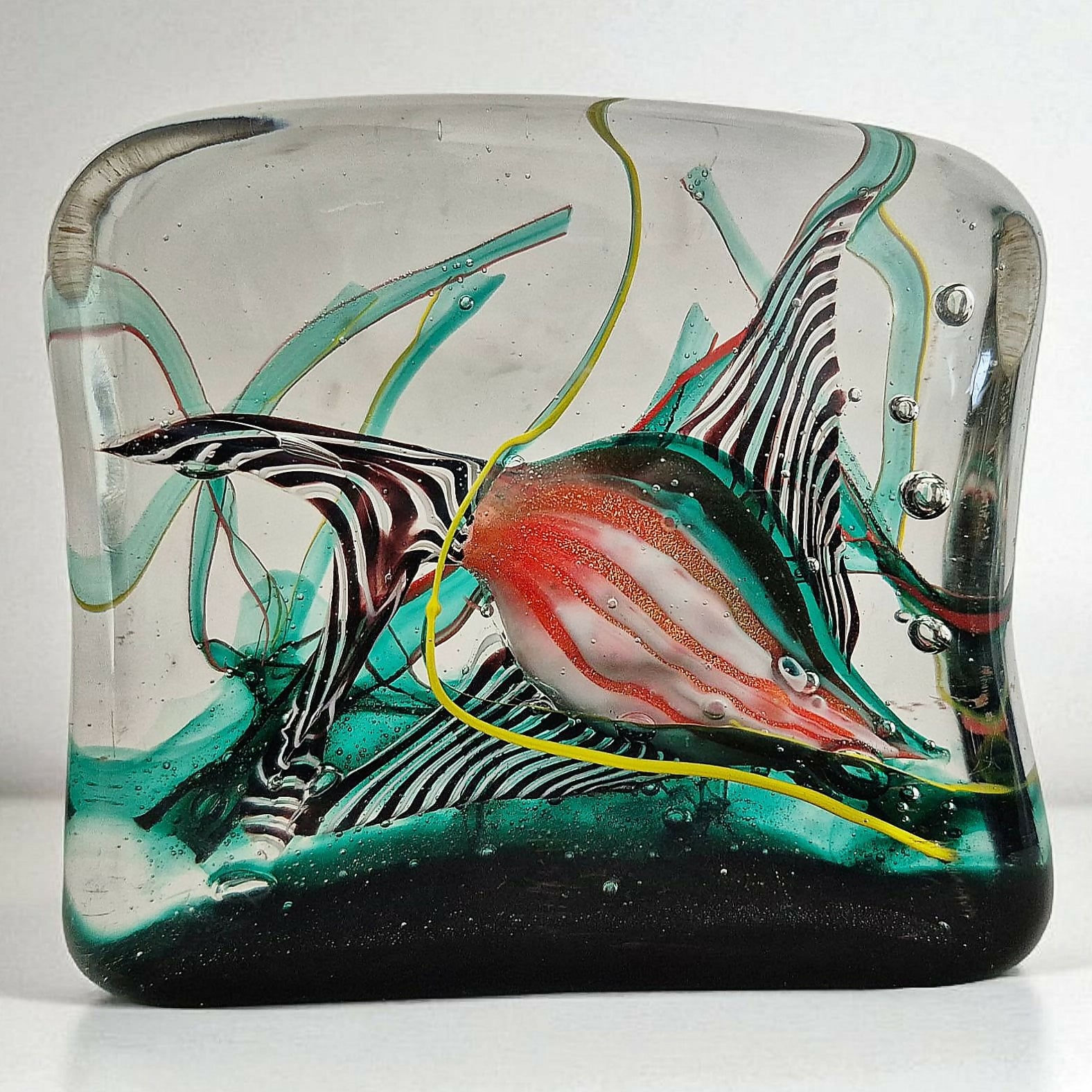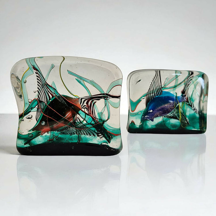 Par de raríssimas esculturas ´´ Aquário`` em bloco vidro artístico Murano,