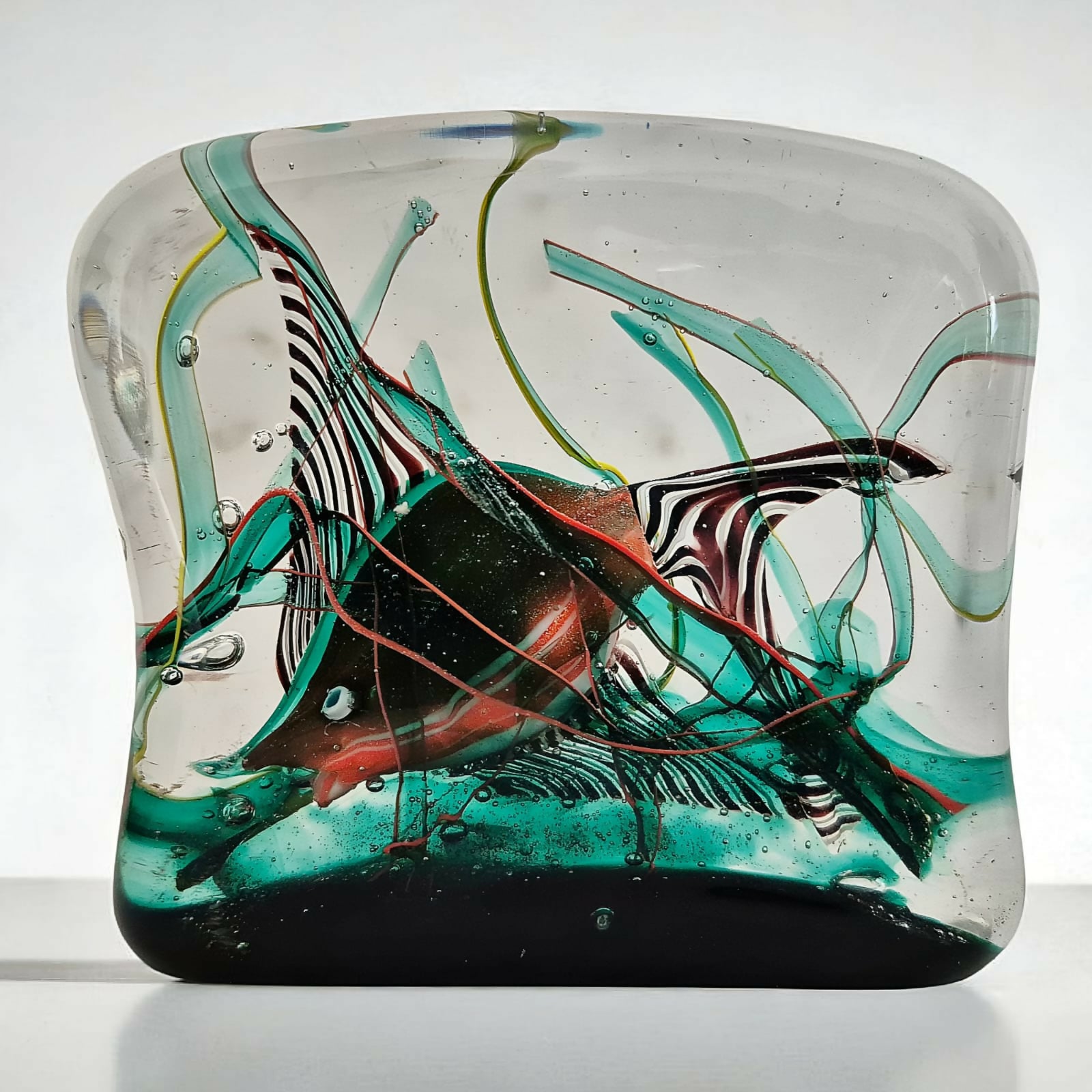 Bloco vidro artístico Murano, criadas na prestigiada manufatura Aureliano Toso sob a direção do icônico Dino Martens, um dos mais inovadores mestres do vidro do século XX.