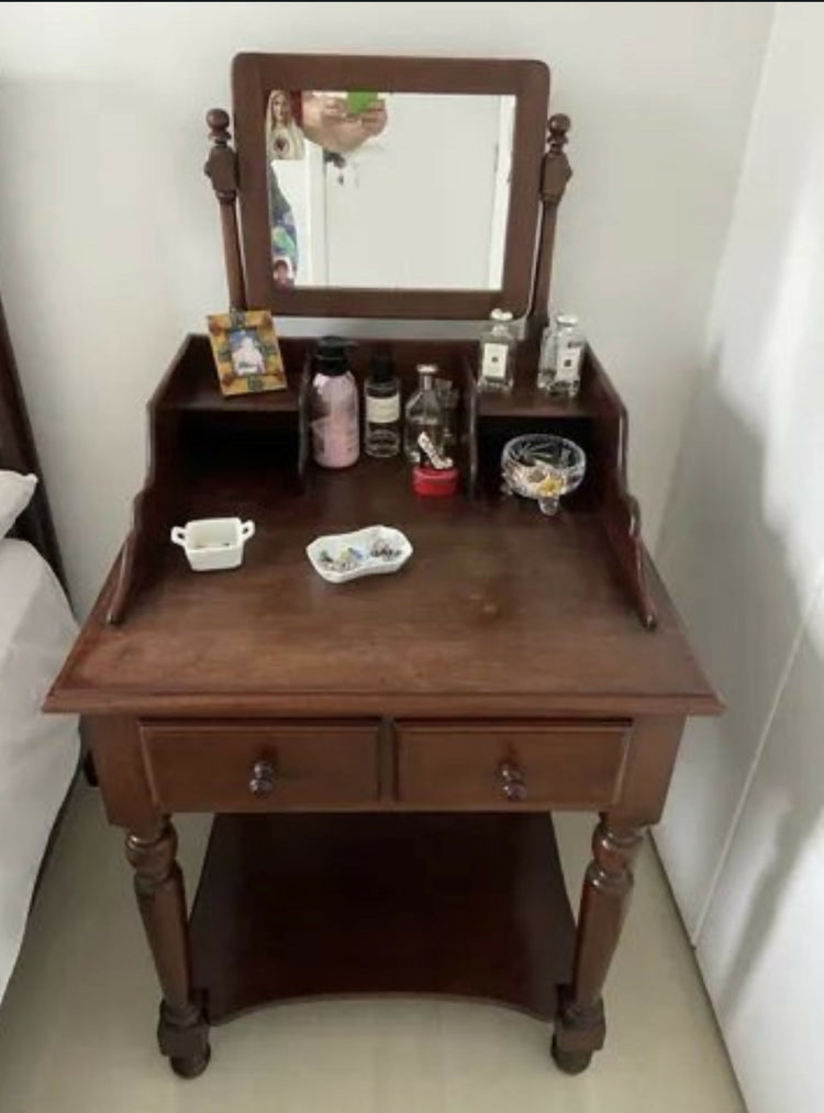 Linda penteadeira , fica bem no quarto ou na sala , duas gavetas e espelho, madeira nobre. O espelho é removível.