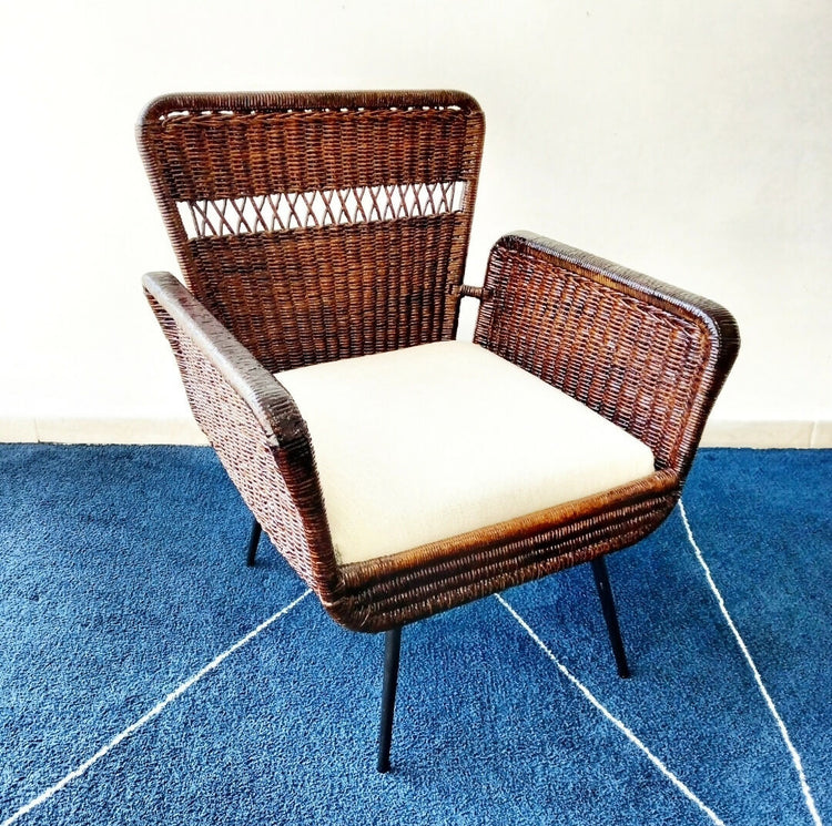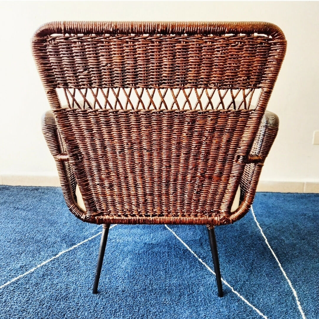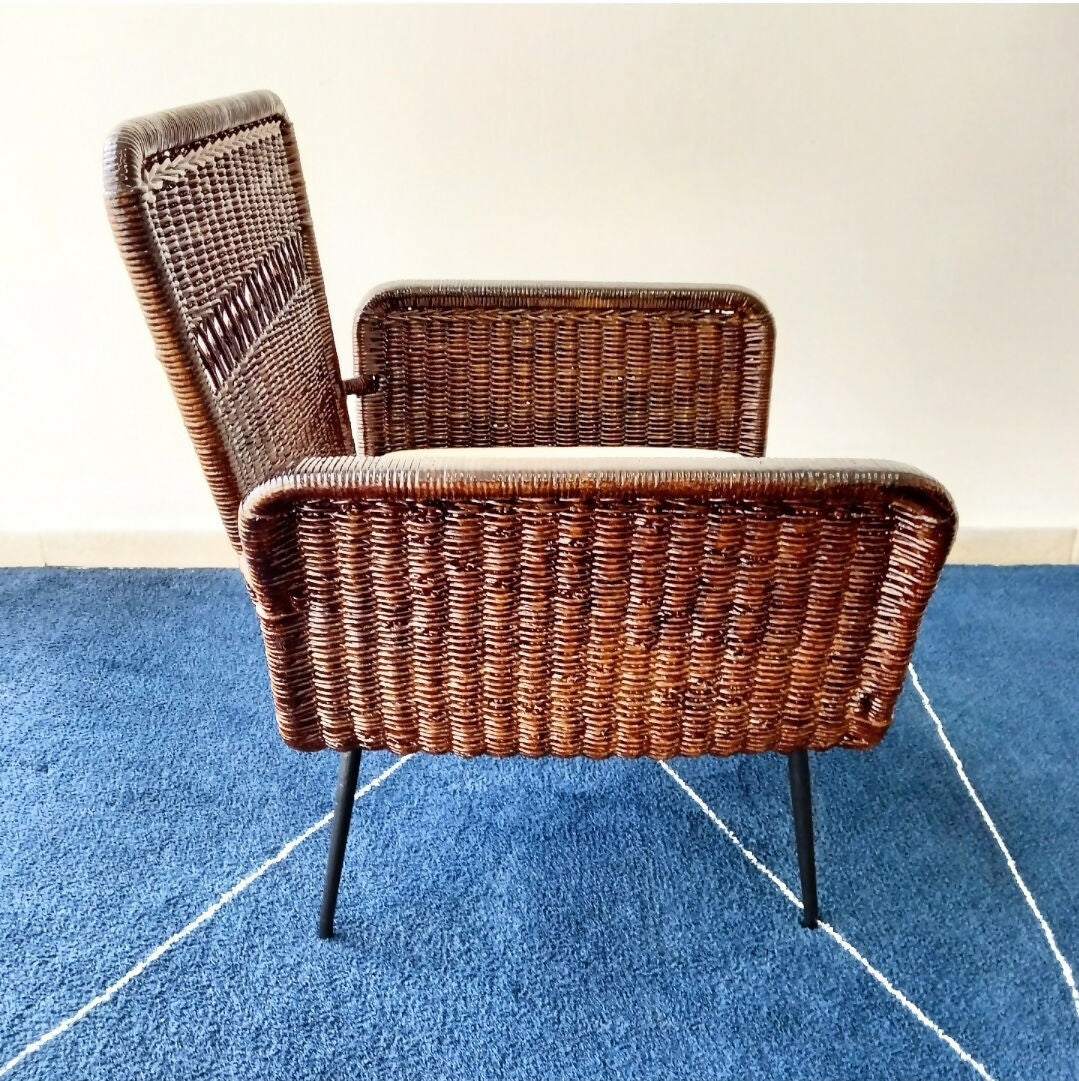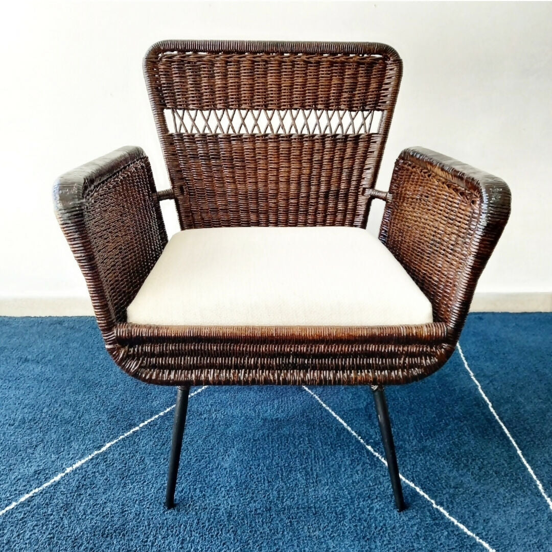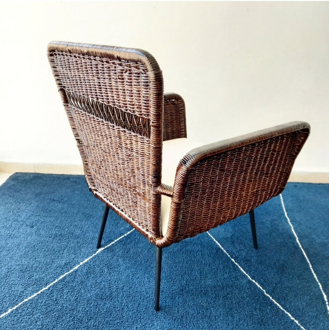 Poltrona anos 60 em ferro e junco