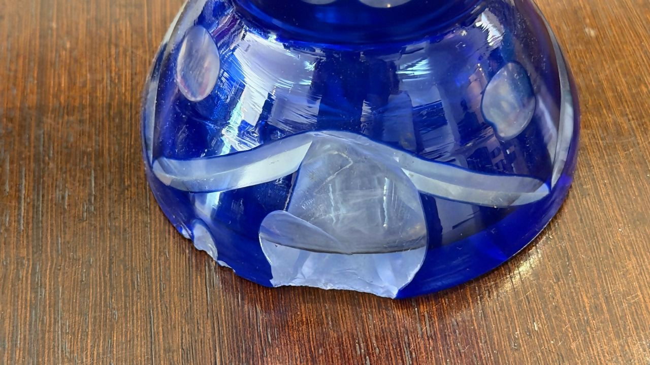 Poncheira em Cristal Azul lapidado