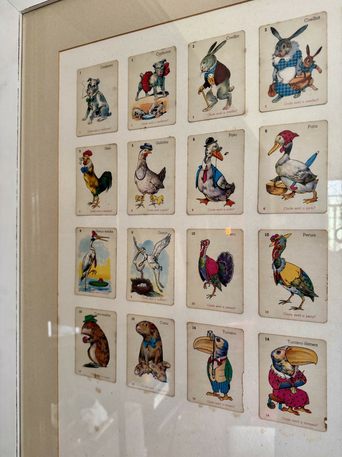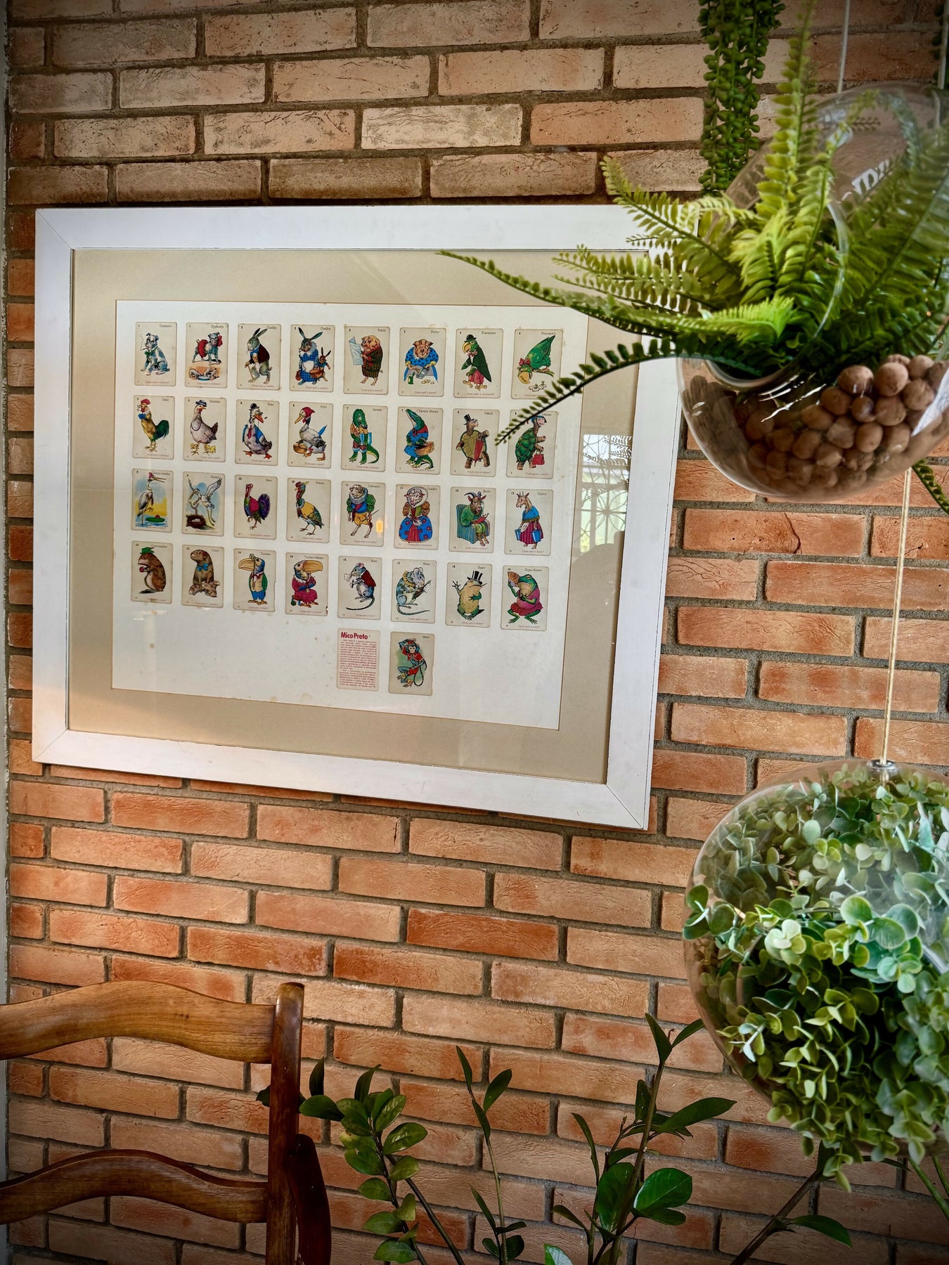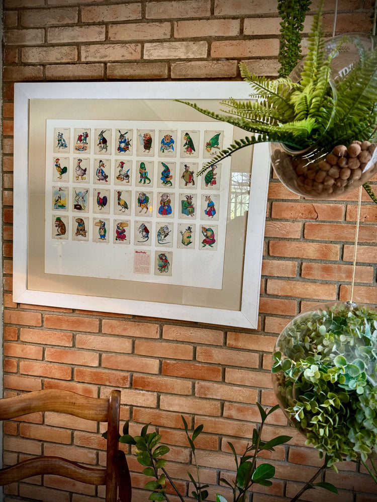 Quadro com antigo baralho Mico Preto em linda moldura maciça em pátina.