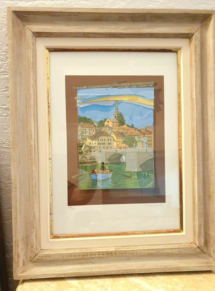Quadro com técnica mista em impressão gicleé de Sonia Menna Barreto chamada Junho. Impecável!