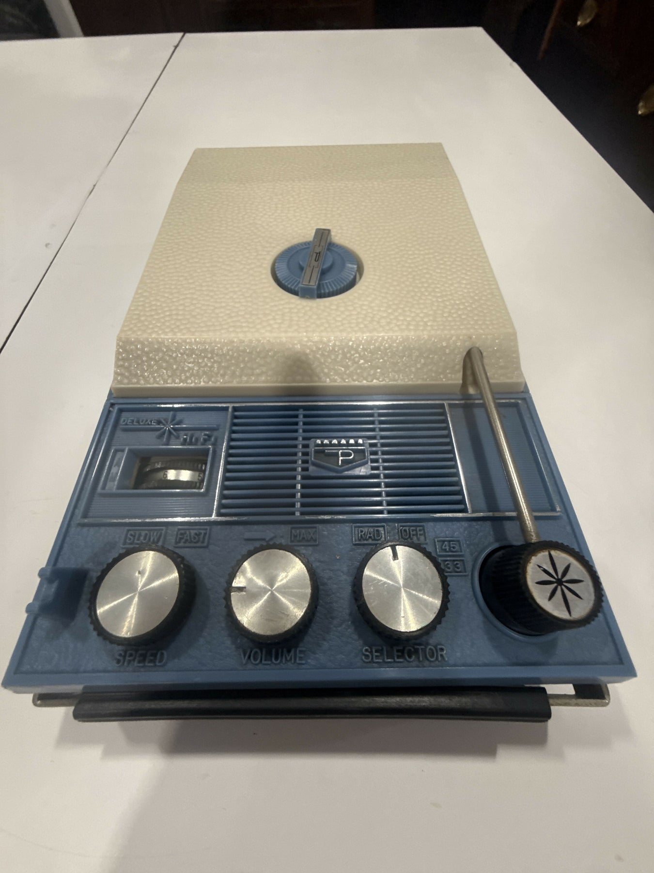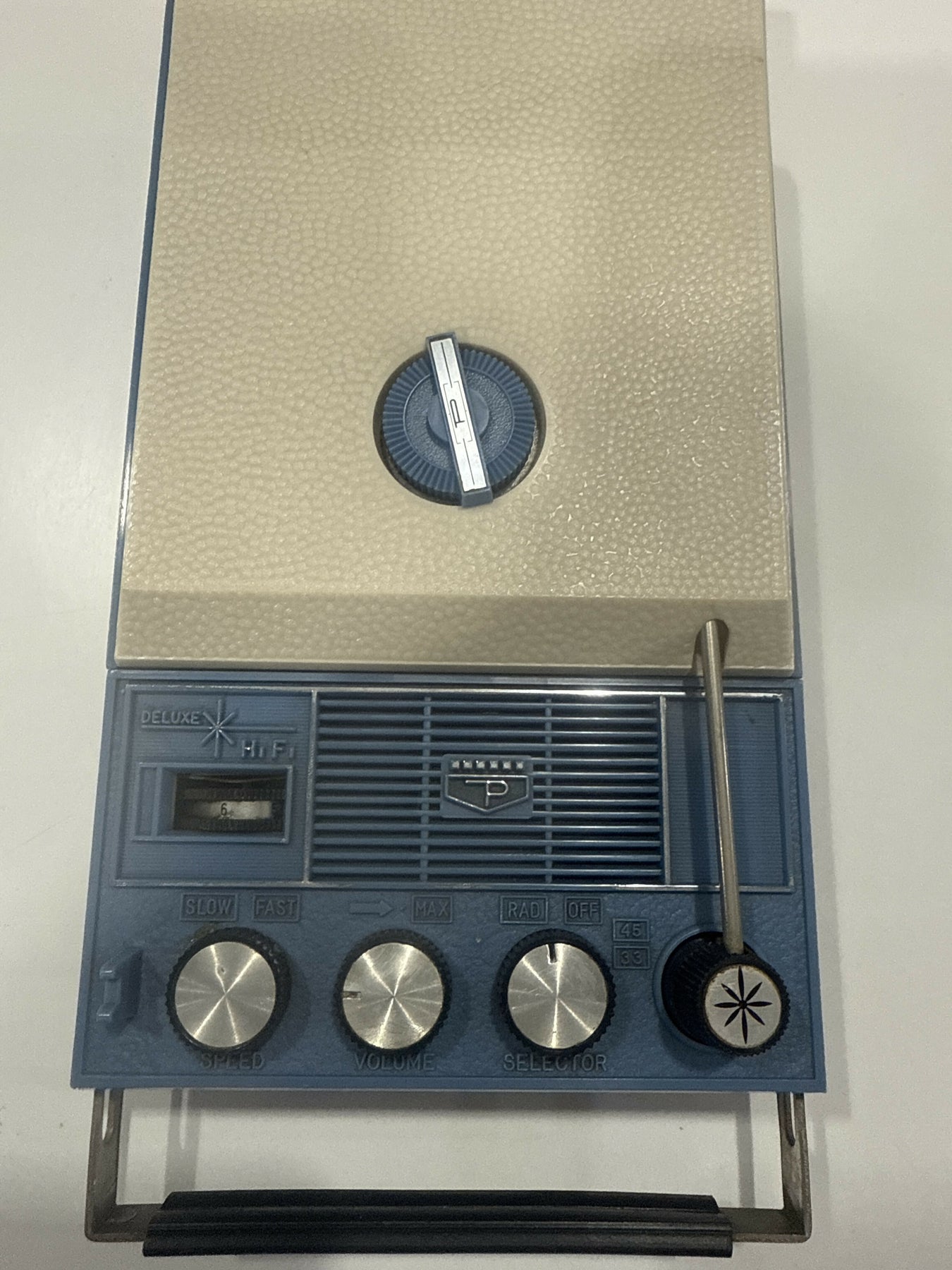 Vendo um Radio Phonograph japonês dos anos 60, modelo portátil que reúne rádio AM + toca-discos 45/33 RPM em um único aparelho.