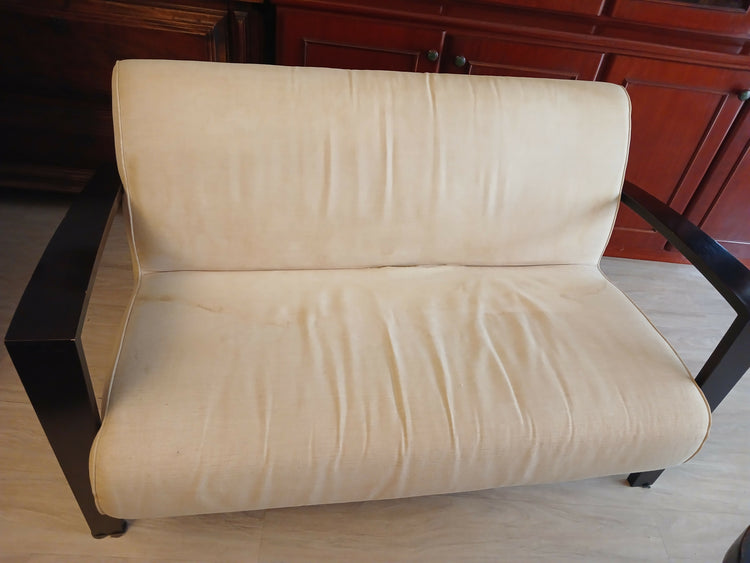 Sofá de 2 lugares, comprado na Tok&Stok, com boa estrutura e marquinhas do tempo, necessitando de novo tecido de cobertura. Retirada no Itaim Bibi, em SP. Pagamento via pix.