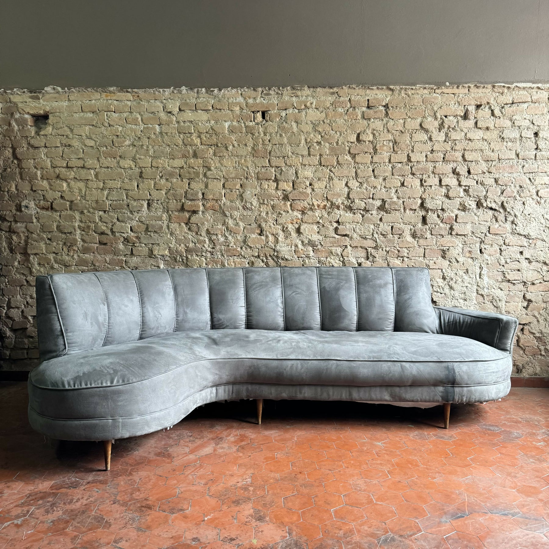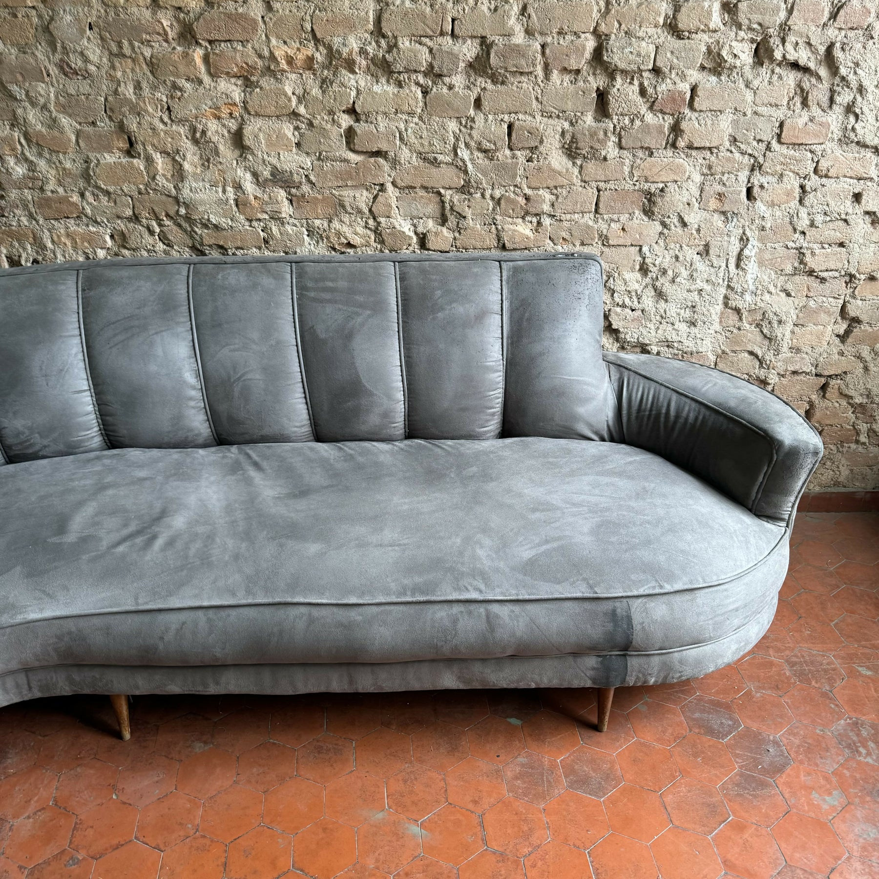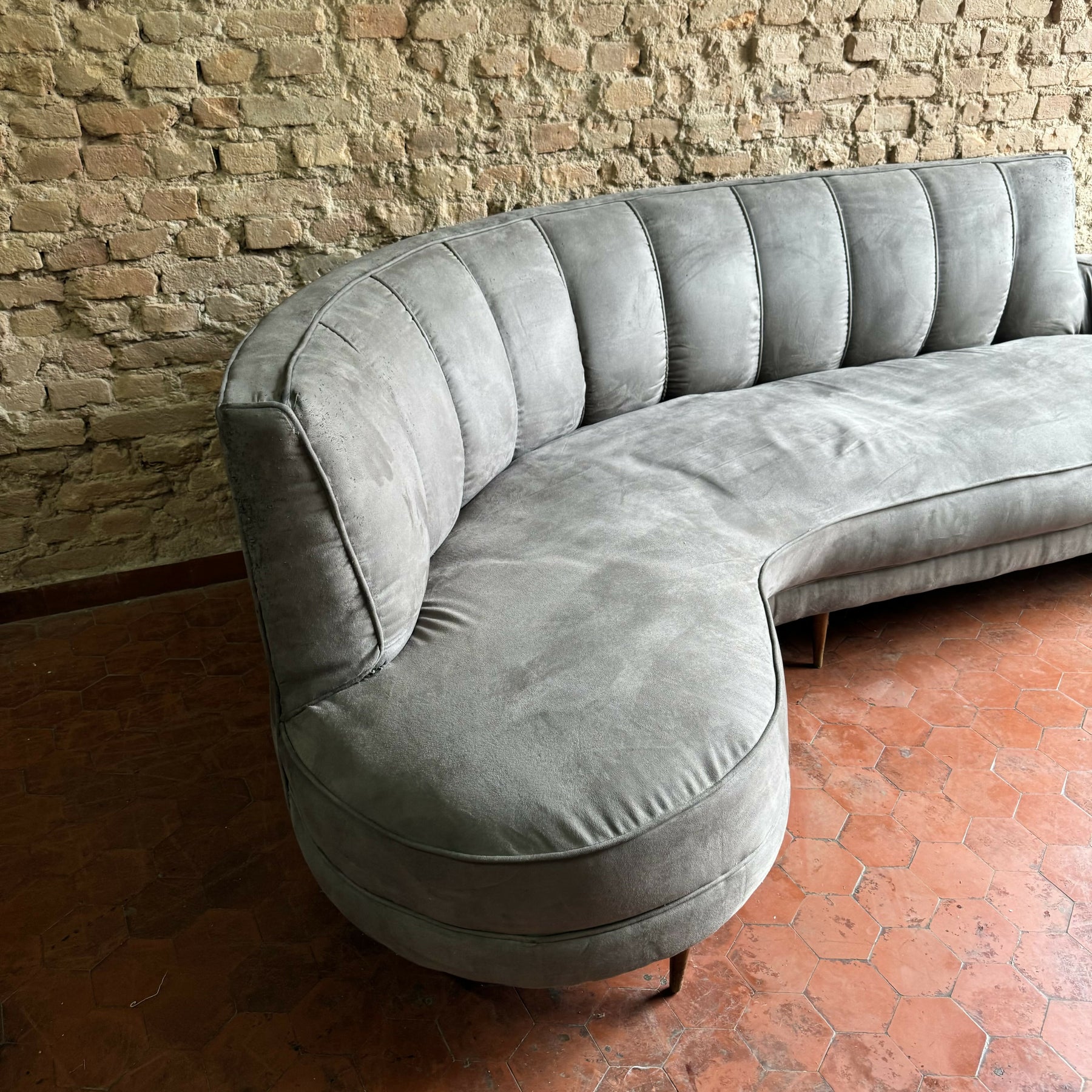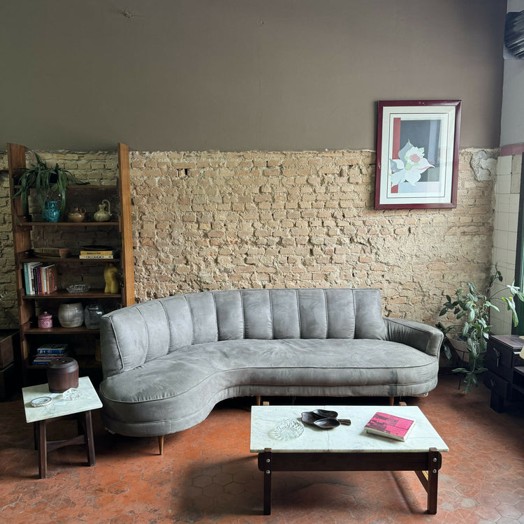 Sofá feijão anos 50 em suede cinza