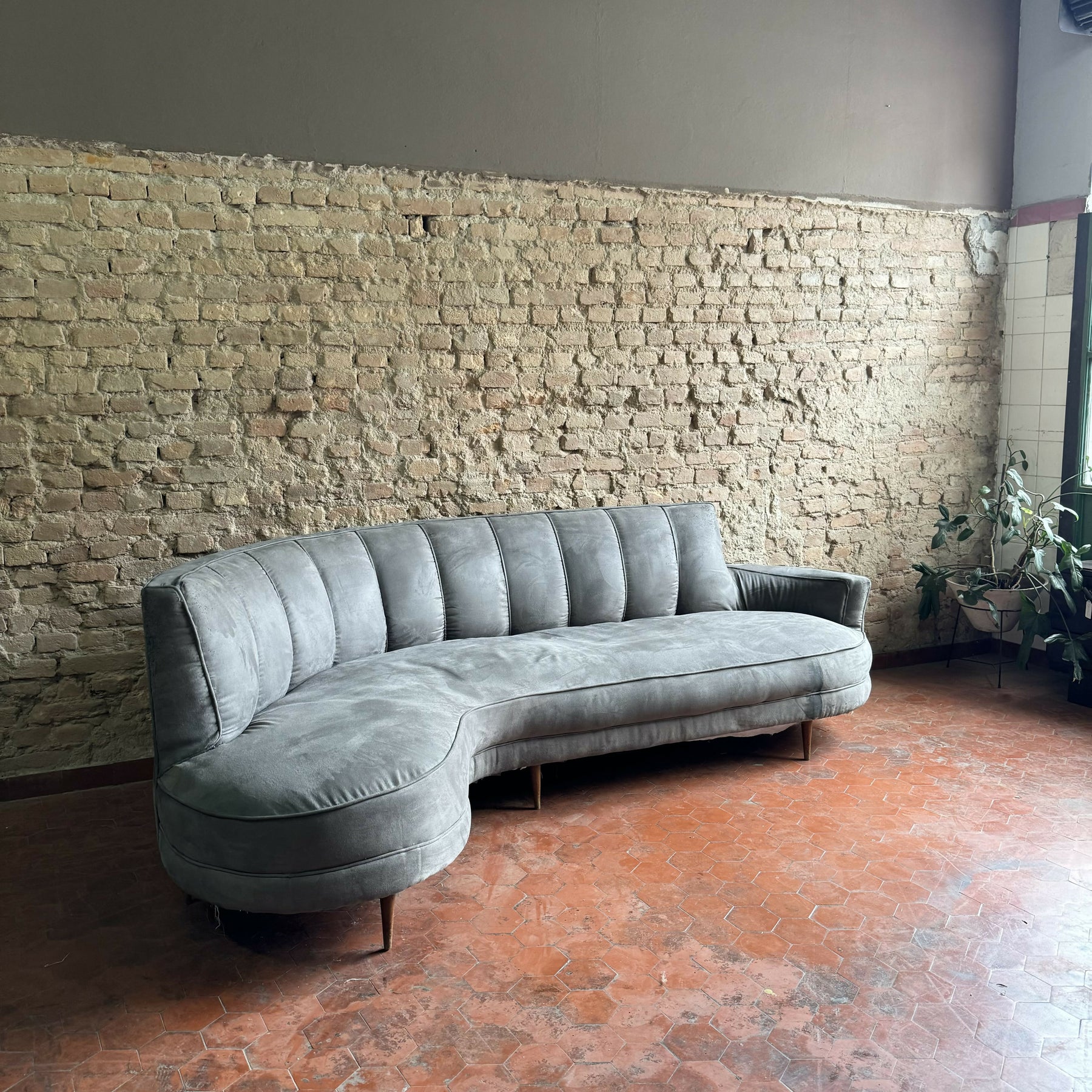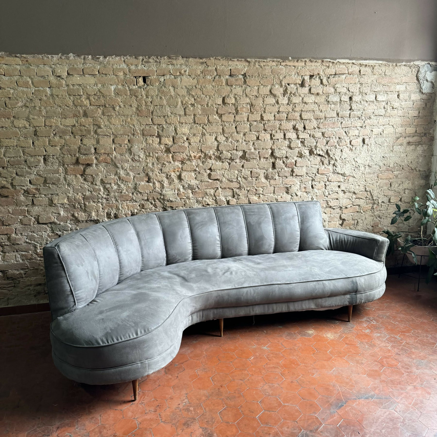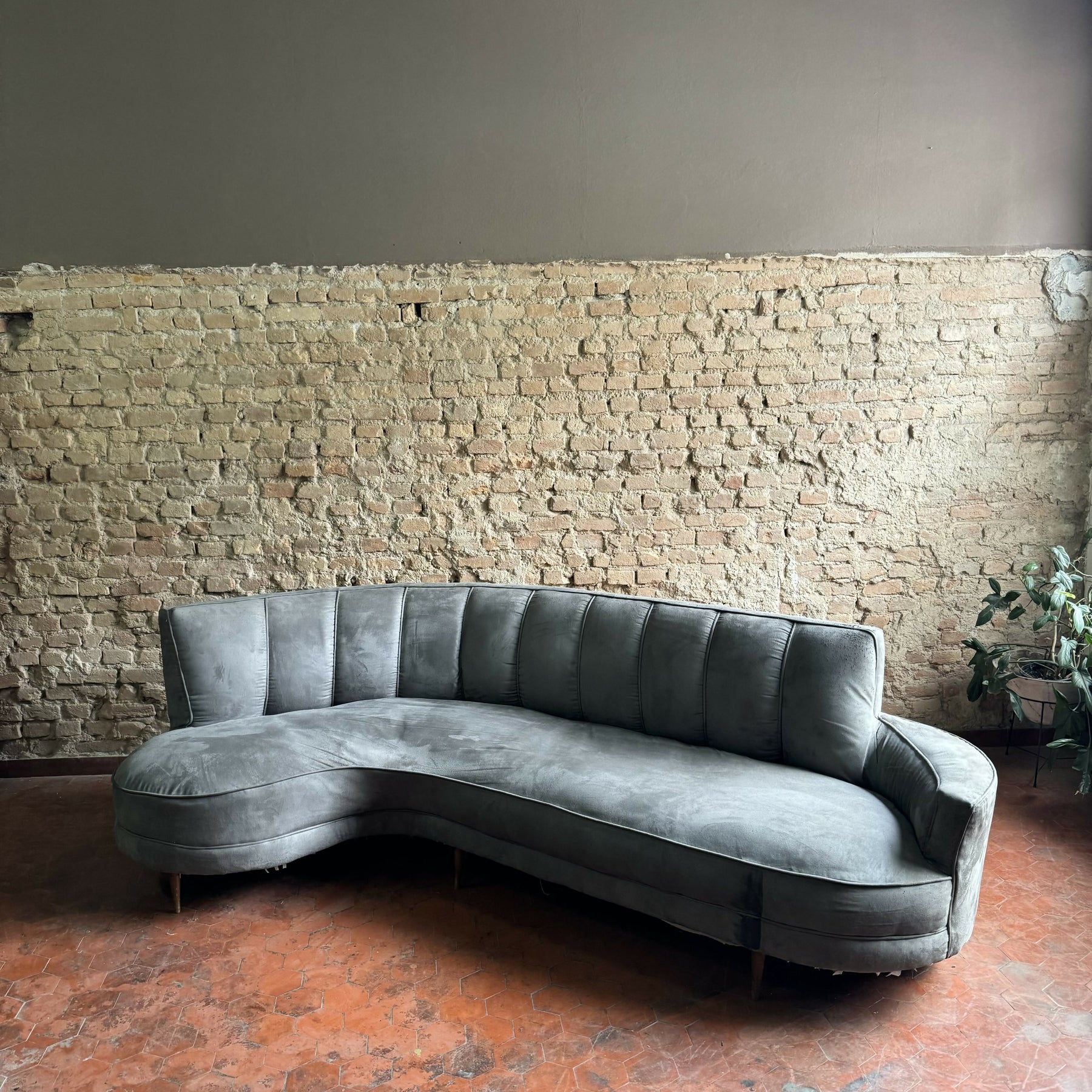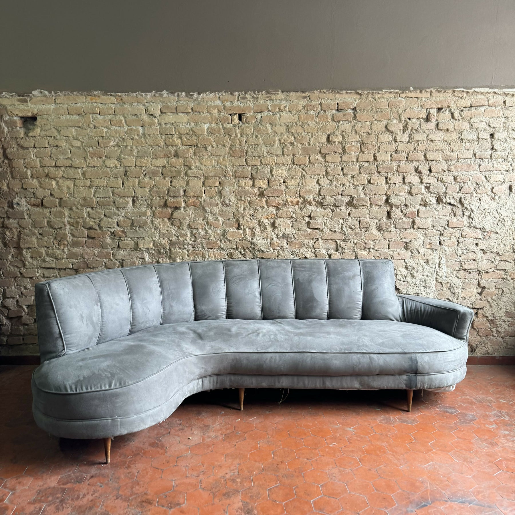 Sofá feijão anos 50 em suede cinza