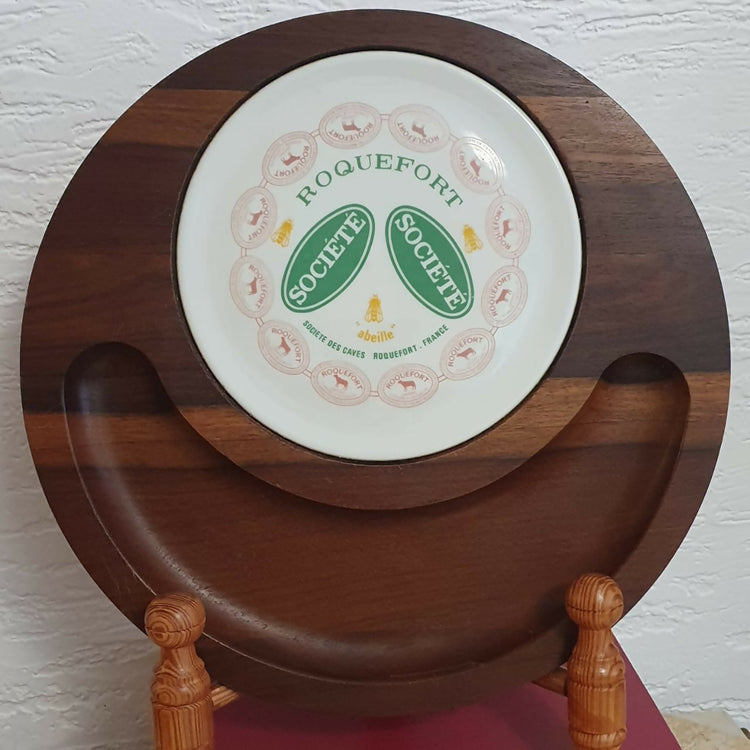 Tábua vintage para queijos em madeira de jacarandá e porcelana, Tropic Art.